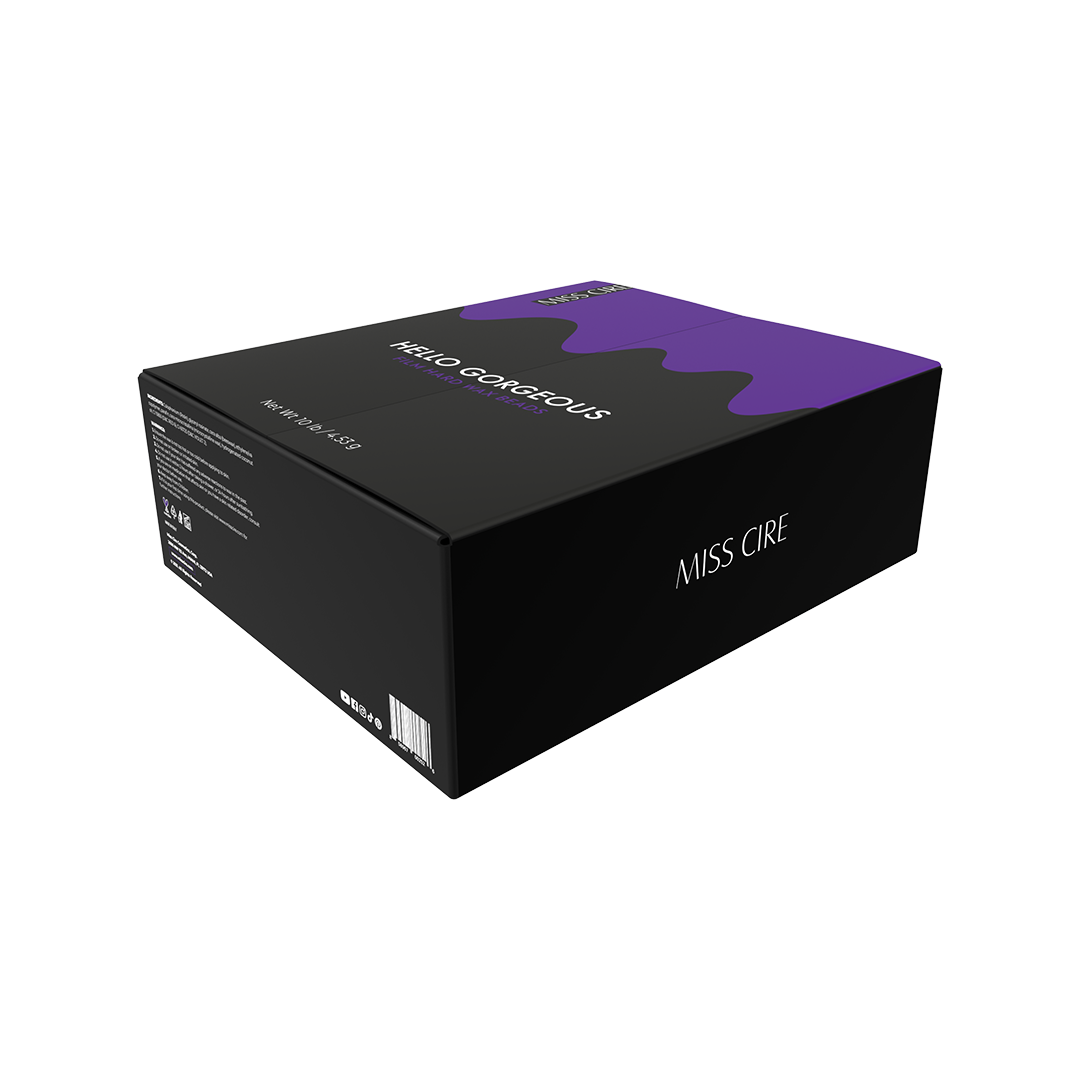 Hello Gorgeous Purple Film Hard Wax Beads 23 Lb - Our unique formula delivers flawless results. Hello Gorgeous strip-less film hard wax offers great elasticity and does not crack upon removal. It can be reapplied over the same area for stubborn hairs. Our purple film hard wax reduces irritation, redness, pain and client discomfort. Clients will enjoy a painless waxing experience. Hello Gorgeous is low temp which maximize costumers comfort. Hello Gorgeous offers a gel like consistency, it is unscented and it is excellent for ALL areas of the body including Brazilian/bikini. Apply at a honey like consistency and remove strip while the strip is still tacky not when is fully dry.