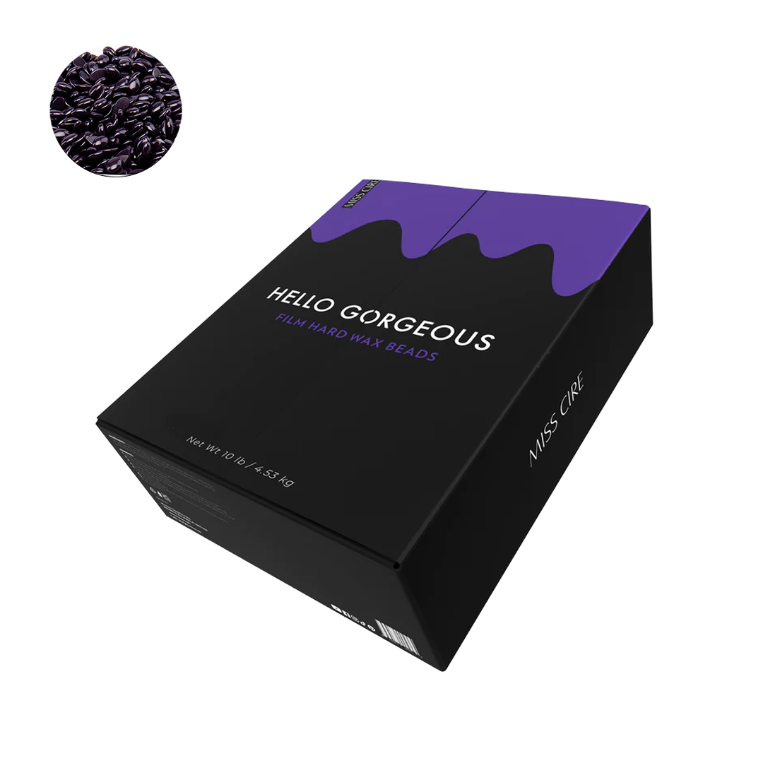 Hello Gorgeous Purple Film Hard Wax Beads 23 Lb - Our unique formula delivers flawless results. Hello Gorgeous strip-less film hard wax offers great elasticity and does not crack upon removal. It can be reapplied over the same area for stubborn hairs. Our purple film hard wax reduces irritation, redness, pain and client discomfort. Clients will enjoy a painless waxing experience. Hello Gorgeous is low temp which maximize costumers comfort. Hello Gorgeous offers a gel like consistency, it is unscented and it is excellent for ALL areas of the body including Brazilian/bikini. Apply at a honey like consistency and remove strip while the strip is still tacky not when is fully dry. Special Instructions; During warm weather itβs normal for the Hard Wax beads to stick together due to the ingredients on the formulation, this does NOT affect the quality or efficiency of your wax beads. To Release the beads, simply put your bag of wax inside of a cold temperature room for at least 1 hour, set your closed bag on a hard surface and tap the bag until your beads separate, pour your beads into your pot and get waxing π